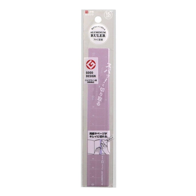○紙がキレイに切れるアルミ定規・雑誌ページ、用紙、書類の不要部分などの切り取りに便利 ・本体サイズ:H25×W160×D1.5mm、15g ・目盛り寸法:15cm ・材質:アルミニウム