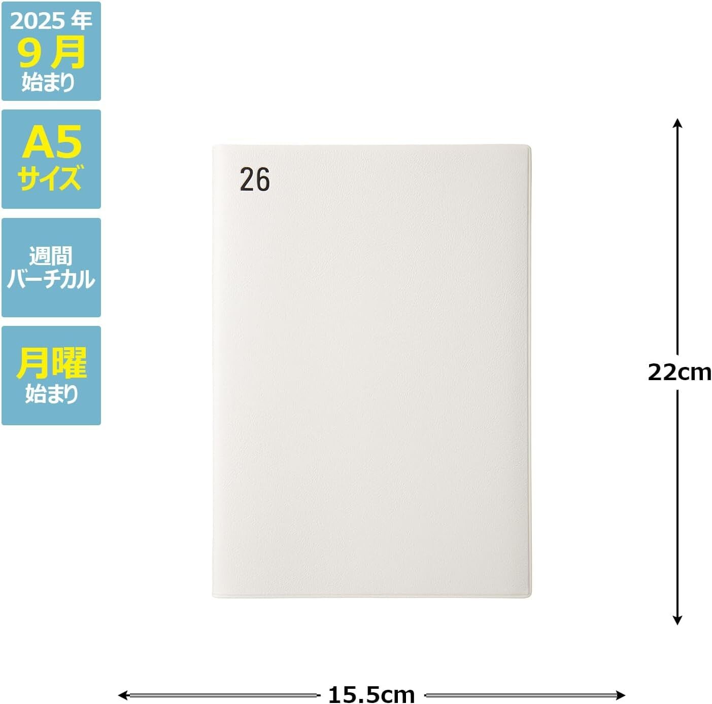 ラコニック 手帳 2026年 A5 ウィークリー 年号 ホワイト LALS86-270WH (2025年9月始まり)