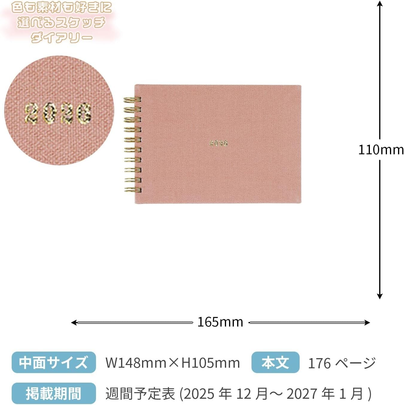 ラボクリップ 手帳 2026年 A6 ウィークリー スケッチ 帆布 ローズ 2612R01-RS (2025年12月始まり) /【メール便OK】