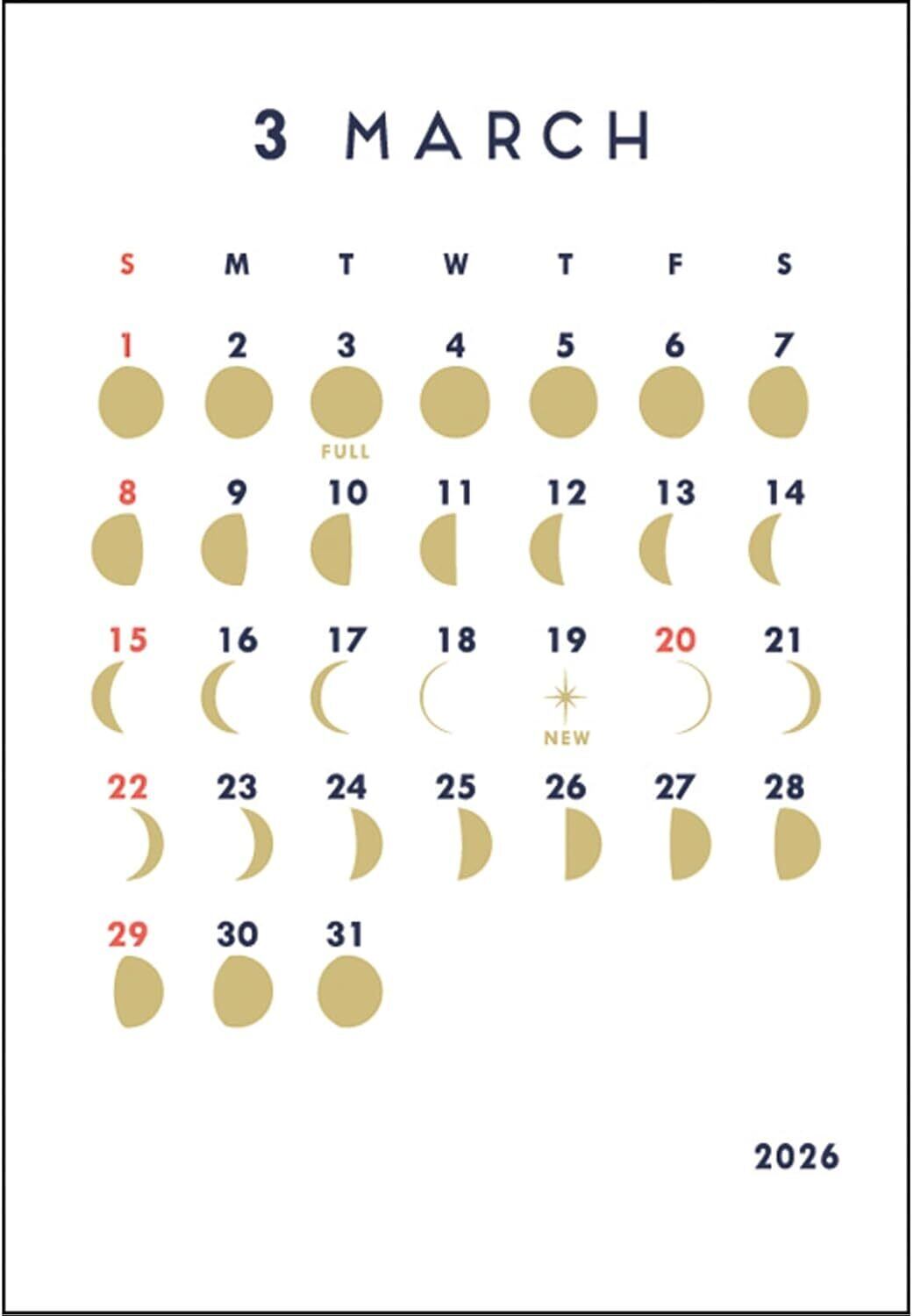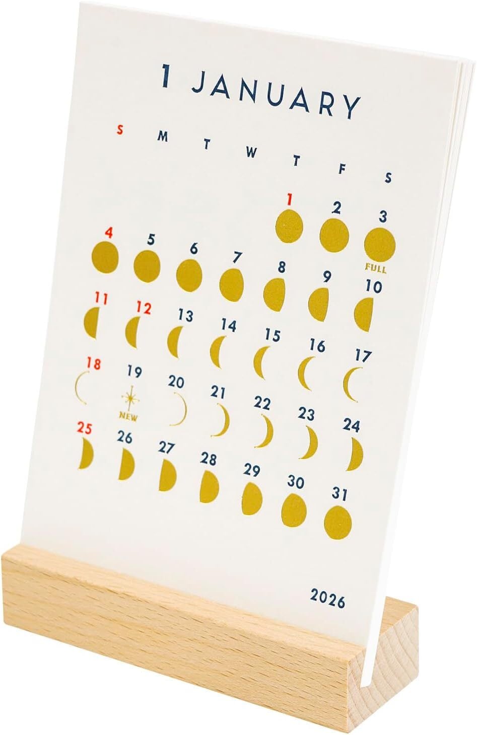 月の満ち欠けをゴールド箔で表現したシンプルで上品なカレンダー。