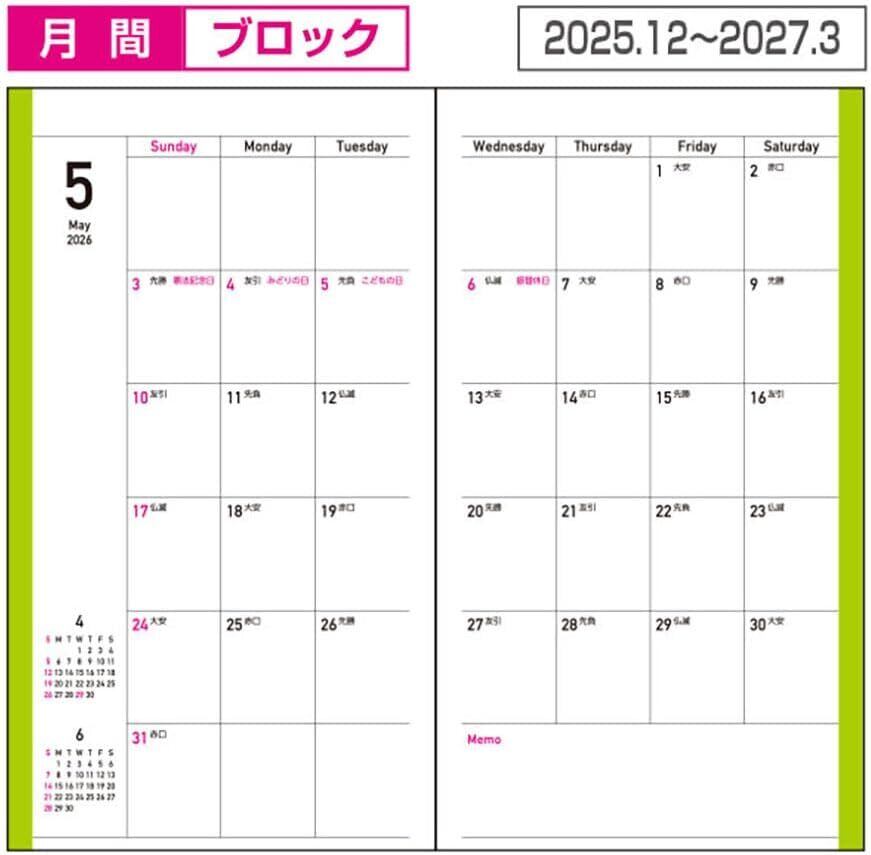 カレンダーとリンクさせるのに便利な、日曜始まりタイプ。
