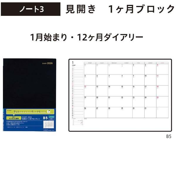 【限定】パイロット PILOT 2026年版ダイアリー 見開き1カ月ブロックタイプ B5 ノート3 PD-26-BN3M-B /【メール便OK】