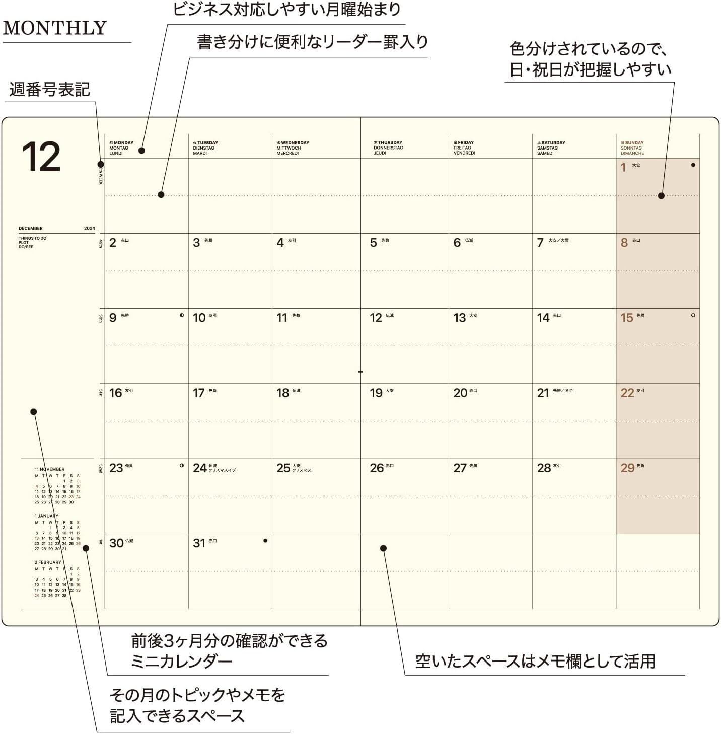 【サイズ】幅14.8×高さ21cm 【掲載期間】2025年12月〜2027年3月 月曜始まり