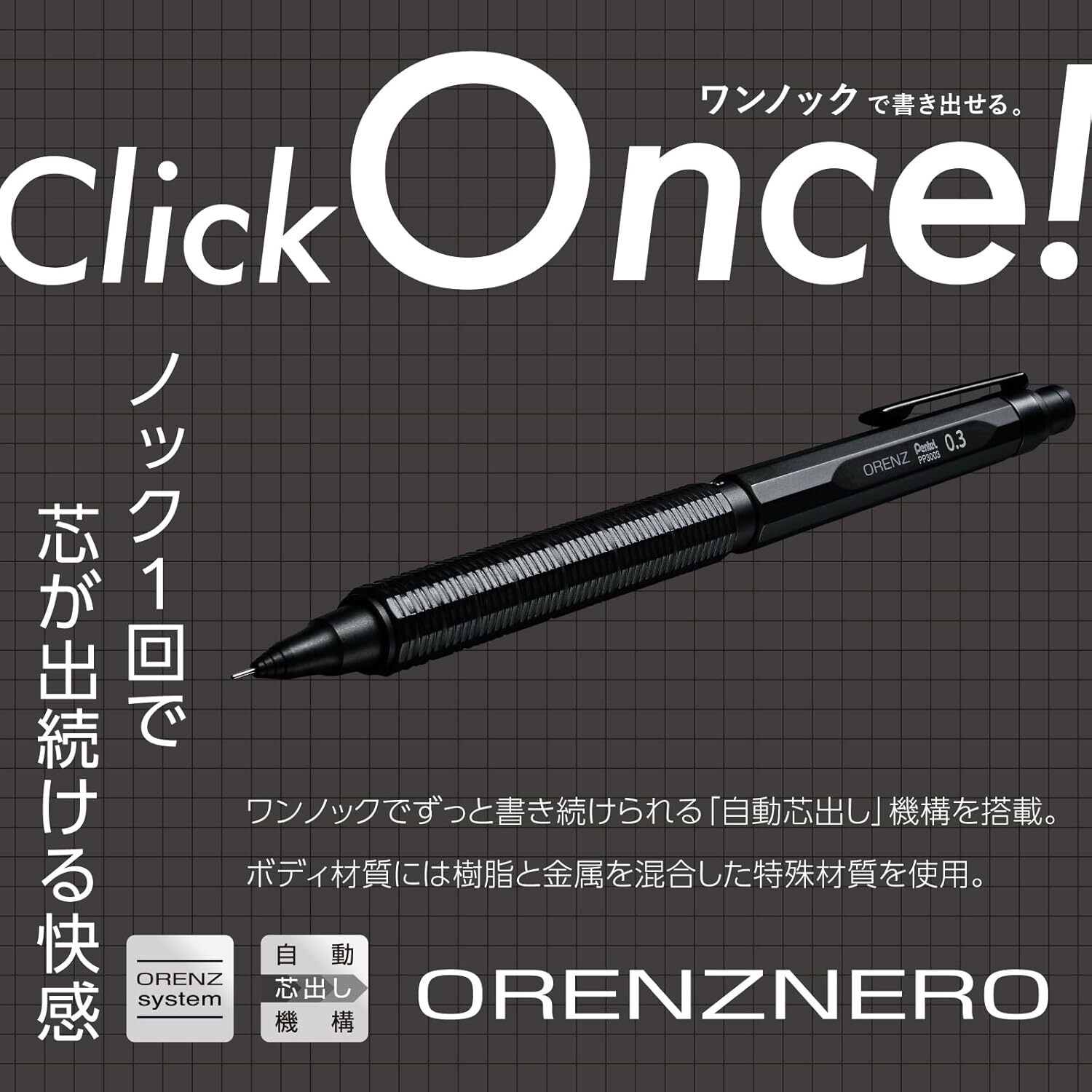 【限定】ぺんてる シャーペン オレンズネロ ブラック 0.3mm 金属替え芯ケースとクリックイレーザー付き PP3003-AST