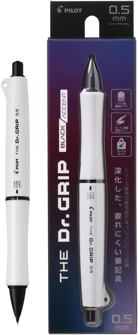 PILOT シャープペンシル ザ・ドクターグリップブラックアクセント 0.5mm マットホワイト HTDGB-15-MW 【メール便OK】