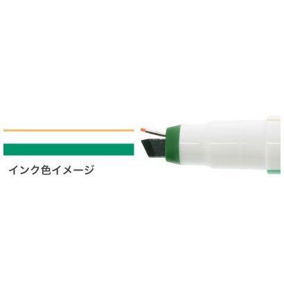 0.5mmのニードルペンは色がオレンジで、「書く⇒隠す」、裏写りしにくいマーカーペンは色がグリーンで、「引く⇒隠す」。ペン先をクルっと回転させるだけで便利に使える。