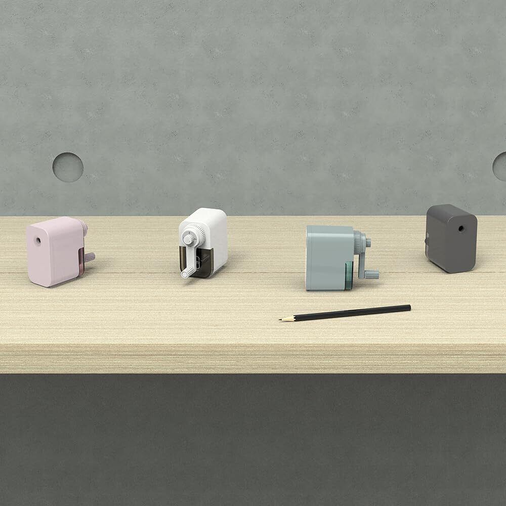 インテリアに馴染む、くすみカラーのコンパクトな手動鉛筆削り。