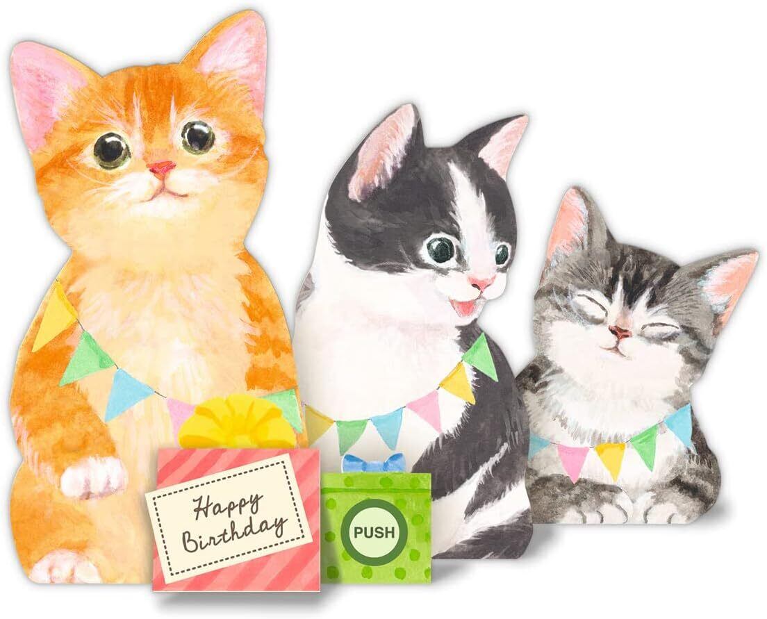 【仕様】定形外、立てて飾れます、曲名♪バースデーソング+猫の鳴き声、ダイカット