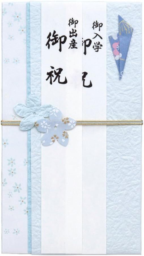やさしい雰囲気のもみ紙にお花を添えたかわいいらしい御祝用金封です。御祝、御出産御祝、御入学御祝の短冊3枚と中袋付。