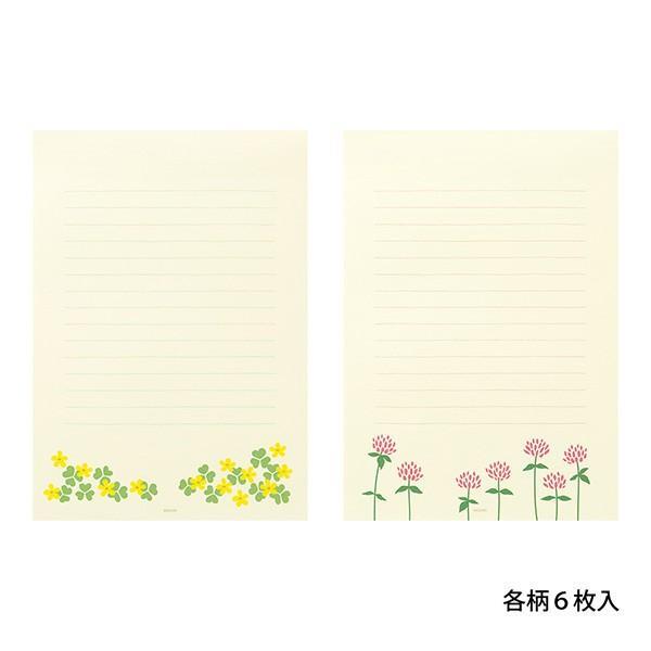 【ミドリ】 便箋 しあわせはこぶ手紙 道の草花柄 ラッキーモチーフ/20541-006 花 草 フラワー 自然【メール便OK】