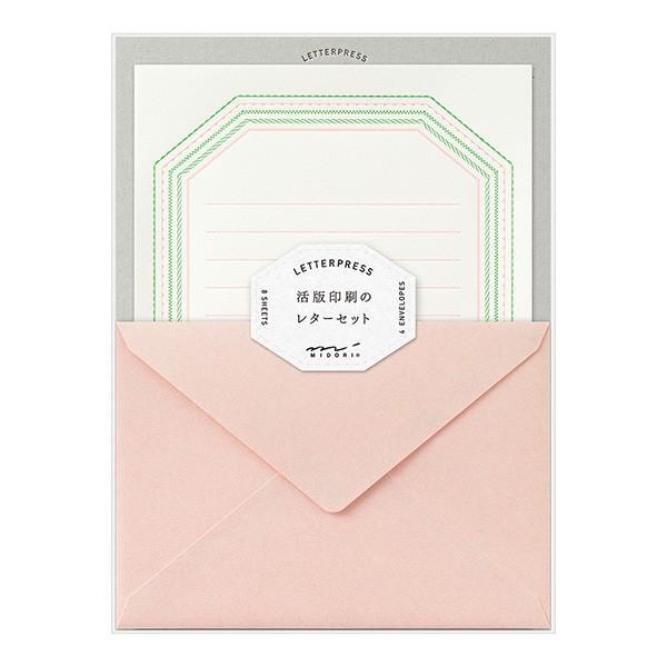 【ミドリ】レターセット 活版 フレーム柄 ピンク / 86462-006 /活版印刷/手紙 【メール便OK】