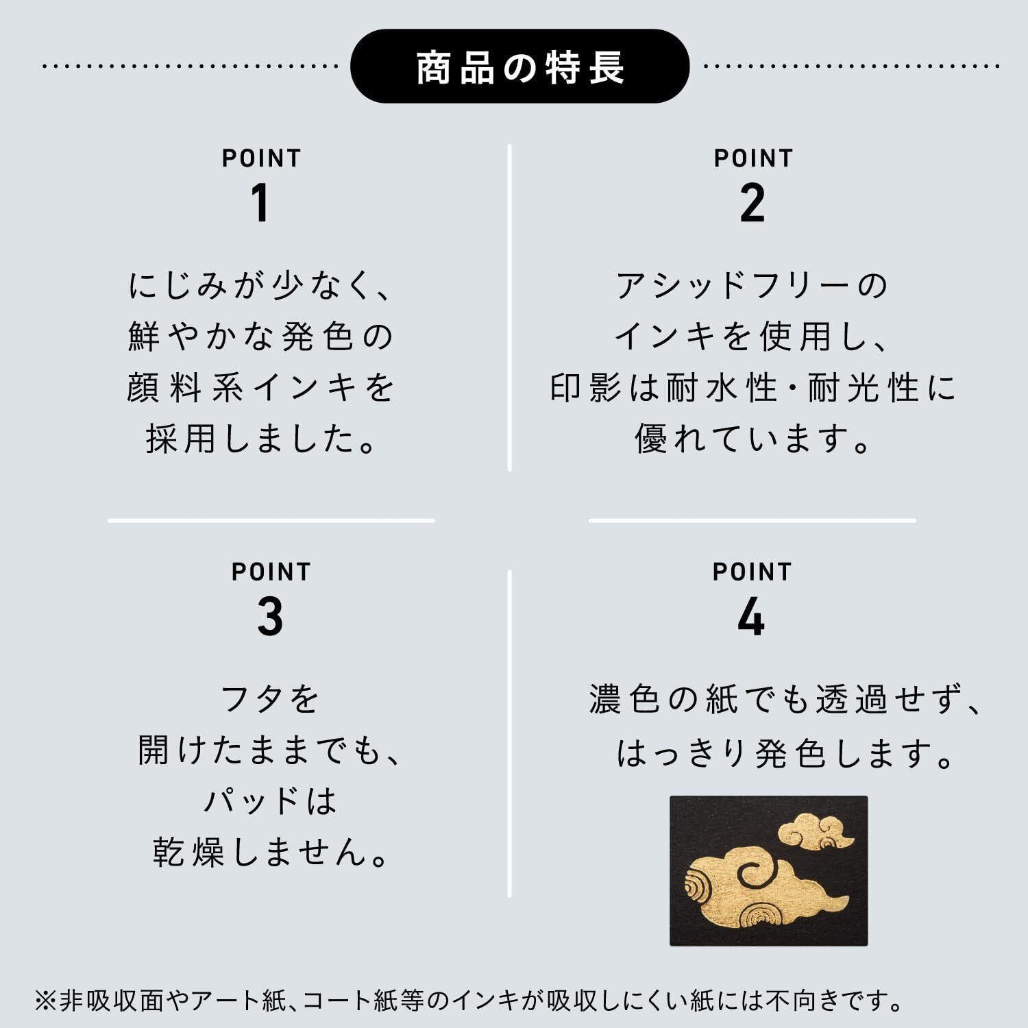 POINT2 アシッドフリーのインキを使用し、印影は耐水性・耐光性に優れています。
