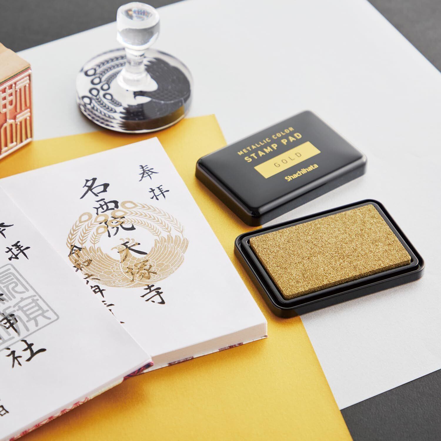 和紙などの紙へのなつ印にもクッキリ鮮やかに押せるゴールドのスタンプパッド。