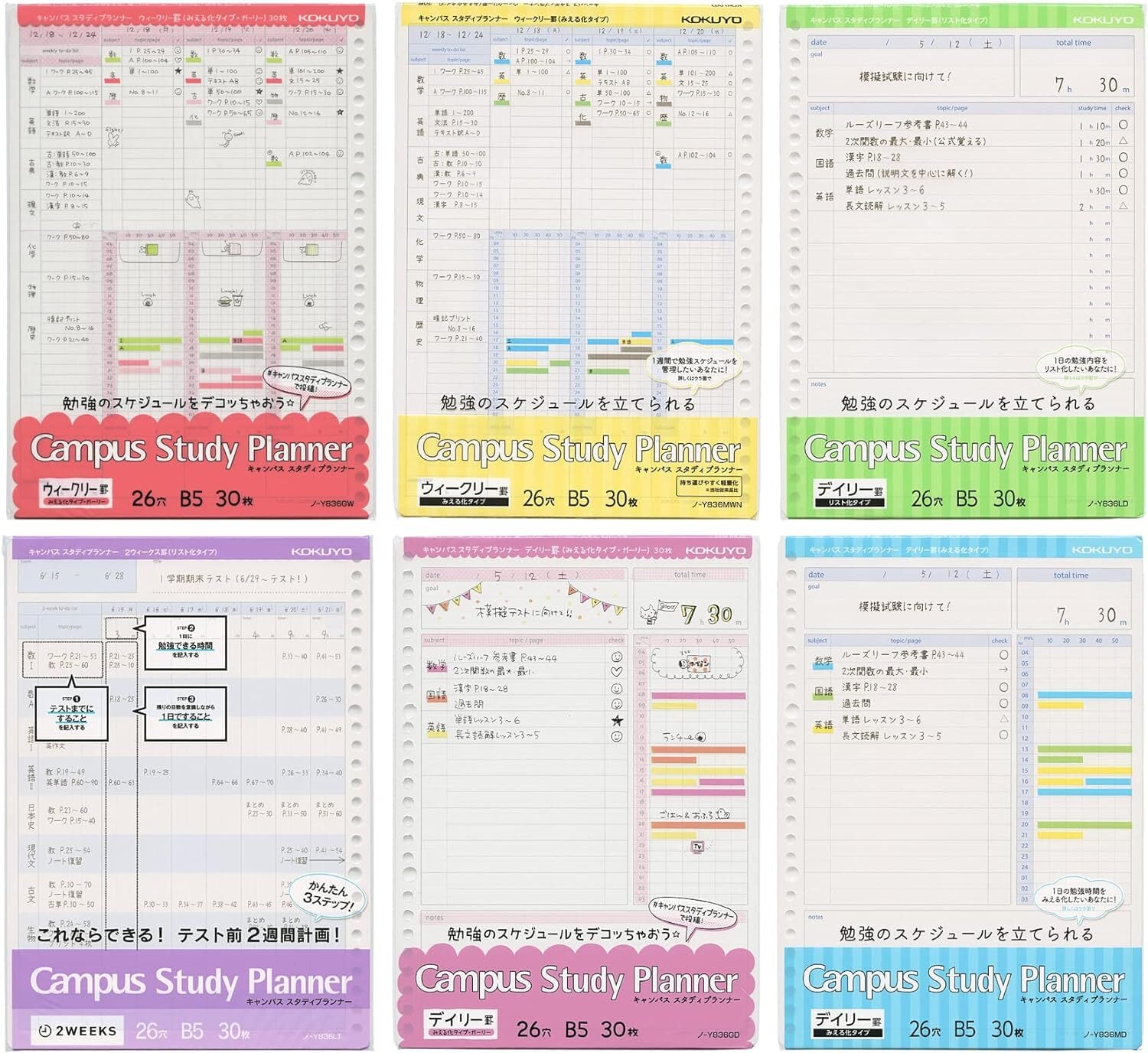 コクヨ キャンパス スタディプランナー B5 デイリー罫見える化ガーリー・ウィークリー罫見える化・デイリー罫リスト化 ノ-Y836 マルチカラー【メール便OK】