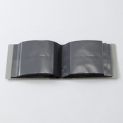 インテリアを邪魔しないシンプルなタイポグラフとアクセントに見出し金具を設えた240ポケットのカードケース。