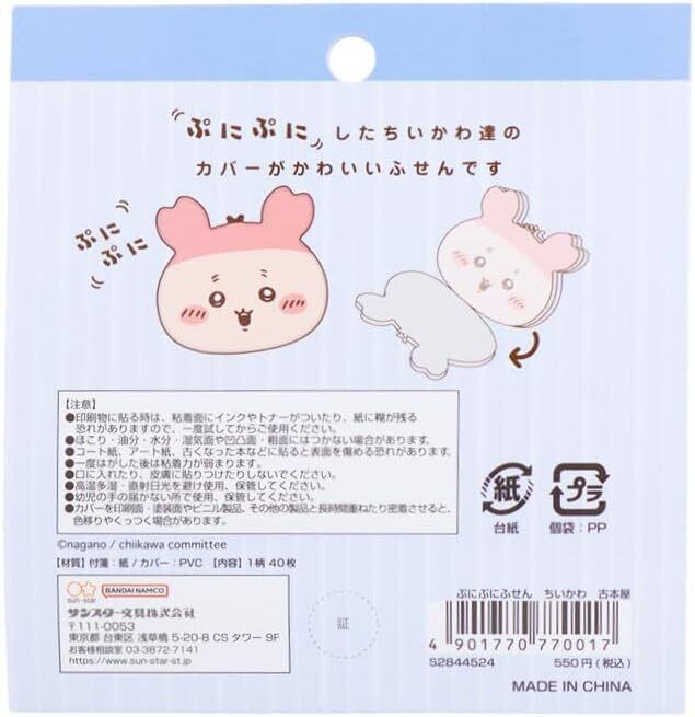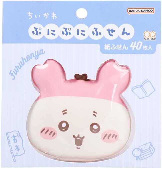 つい触りたくなるぷにぷにカバー付きの、[ぷにぷにふせん]。 柄はちいかわ。 キャラクターは、古本屋。