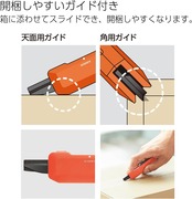 ・ケース前部のガイドを段ボールに沿わせることで、開梱がしやすくなります。