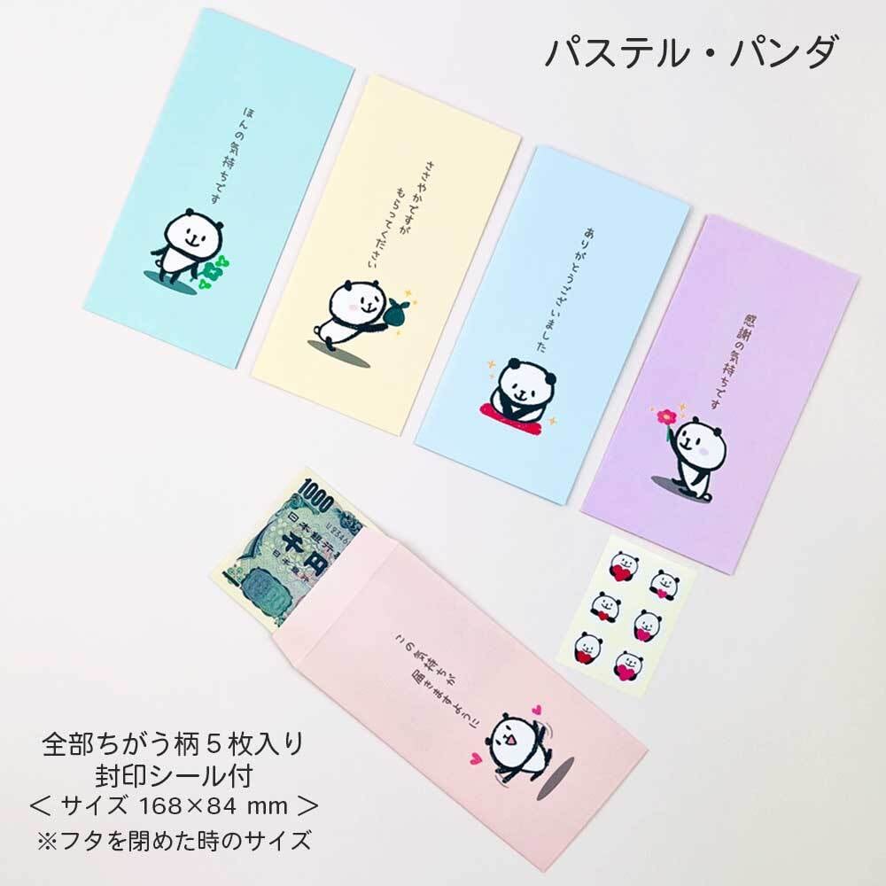 おもしろ金封 パステルパンダ S414013全部ちがう柄5枚入り かわいい お年玉 お年玉袋 ポチ袋 ぽち袋 おもしろシリーズ /【メール便OK】