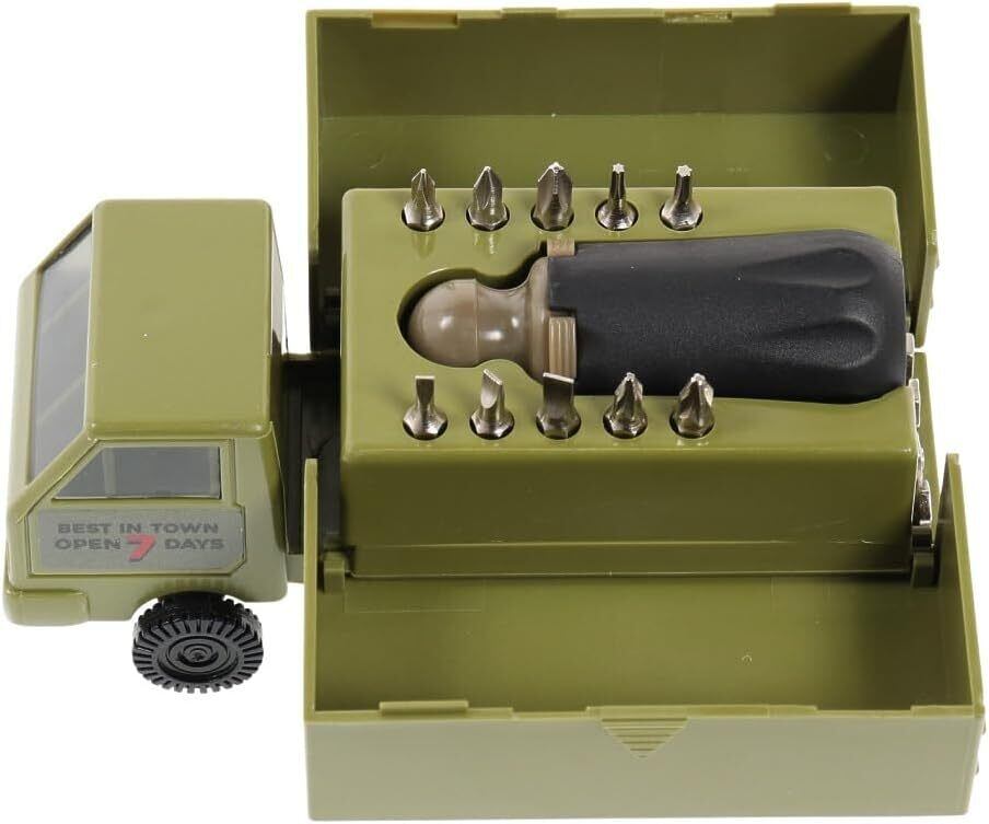一見トラックのおもちゃのように見えますが、荷台部分を開くと中には工具が収められています。