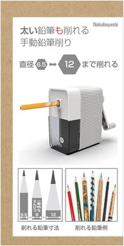 直径6.5〜12ミリまで、太い鉛筆も削れる手動鉛筆削り